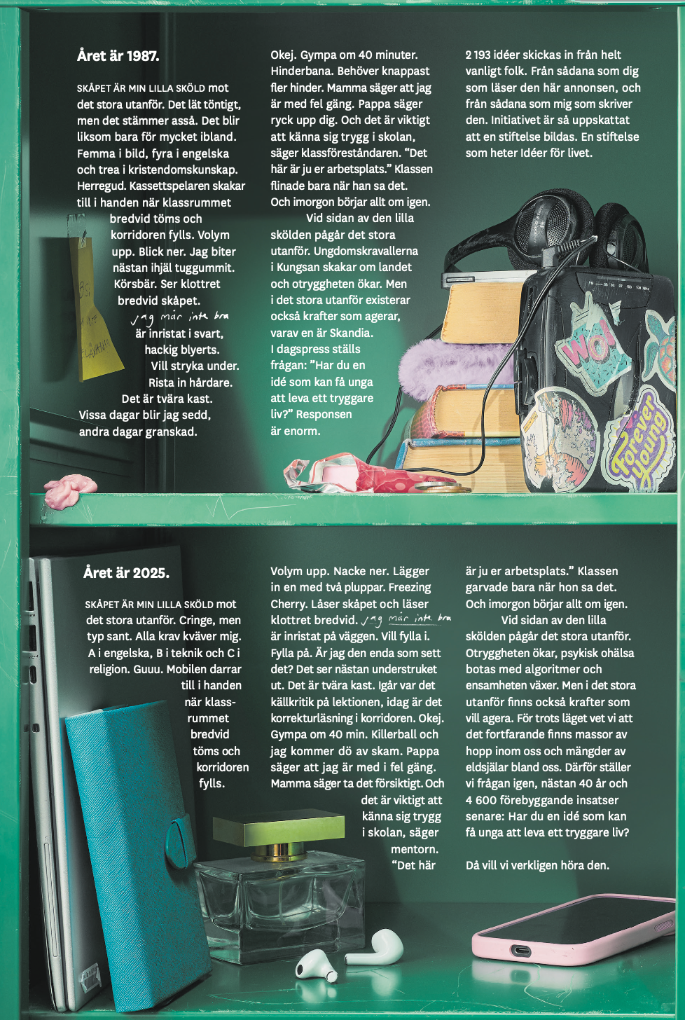 Stiftelsen Idéer för livet har sedan 1987 arbetat förebyggande för ungas trygghet och hälsa. Det är länge, men trots att det nästan är 40 år sedan står dagens unga inför liknande utmaningar som förr, bland annat i skolan. Det förtjänar att understrykas, i ett uppslag.
